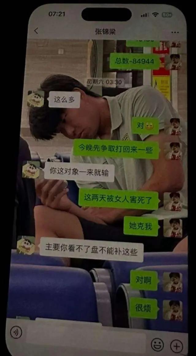 从聊天记录来看,唐天翼与张锦梁谈到了赌球,并提到“总数-84944”,这被外界普遍解读为涉及的赌金额。此外,还有信息显示他们提及“看不了盘”。聊天过程中,张锦梁似乎还对女友表示不满,指责她让自己每次接触都输钱。