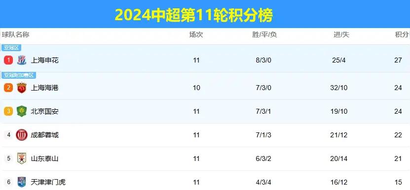 中超才踢到第11轮,争冠形势即将发生大转变!申花榜首危急,两大追兵来势汹汹——国安猛砍5连胜,上港狂胜不止。这一轮,一路连胜的上海申花差点被天津津门虎拉下马,在客场只能以一场平局告终。0比0,这是申花本赛季第一次一球难进。
