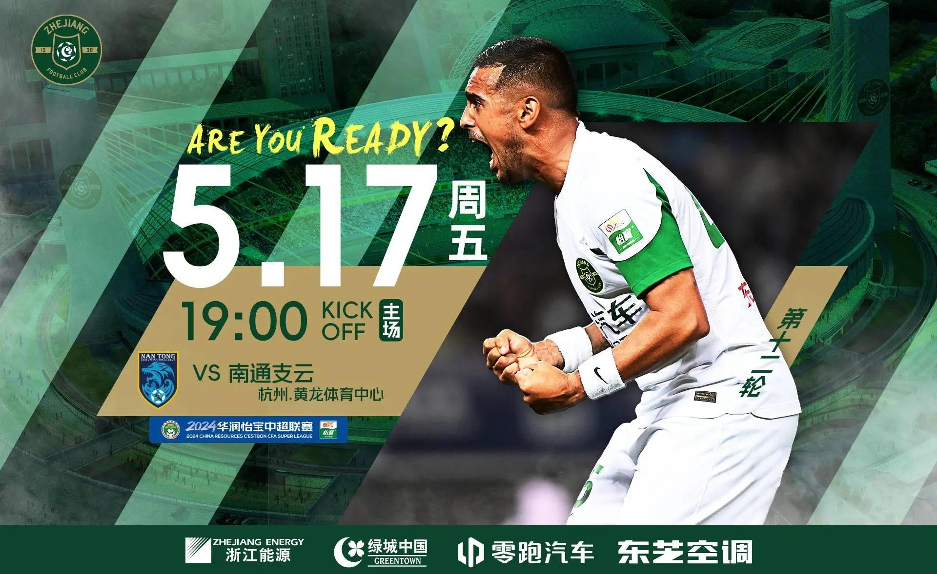 直播吧5月17日讯 今天19:00,中超第12轮,浙江主场迎战南通支云,赛前双方首发阵容出炉。