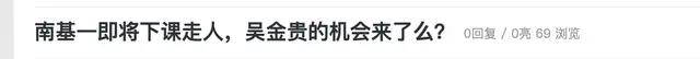 有球迷说,如果南基一下课,那么大概率是先让李玮锋带队,但他带完下半程联赛,几乎不可能的!河南队务实一点还是要请新的主帅,那么谁会成为河南队下一个救火主帅了?目前网络上流言蜚语,有外籍主帅明确表示要来中国,还有球迷给河南队推荐吴金贵,认为吴金贵出山机会来了。
