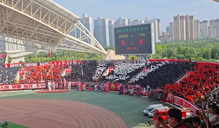 陕西联合本赛季征战中乙,上轮淘汰长春喜都队,本轮坐镇渭南市体育中心体育场,河北足协的闫旭担任主裁判。开场第23分钟,艾沙江小角度推射破门,广州队客场取得领先。第71分钟,逄志泉头球击中立柱,李锐快速插上补射打进,陕西联合扳平比分。