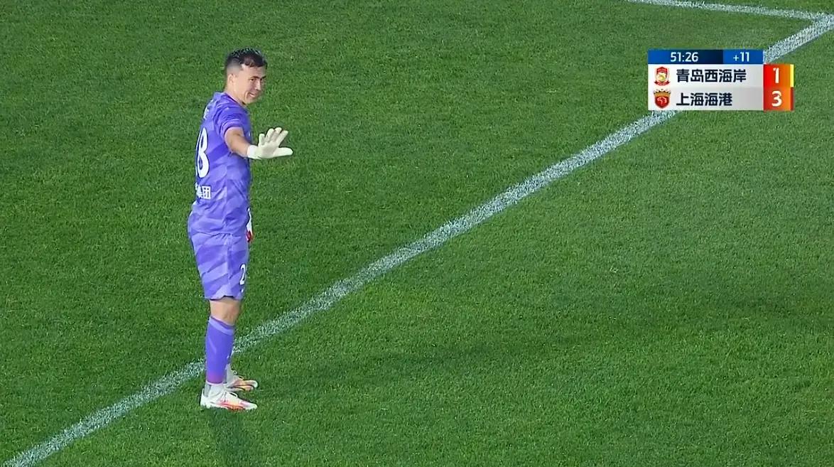 足球报国内部主任李璇表示青岛西海岸门将拉伤了,被虐惨了(下图)。