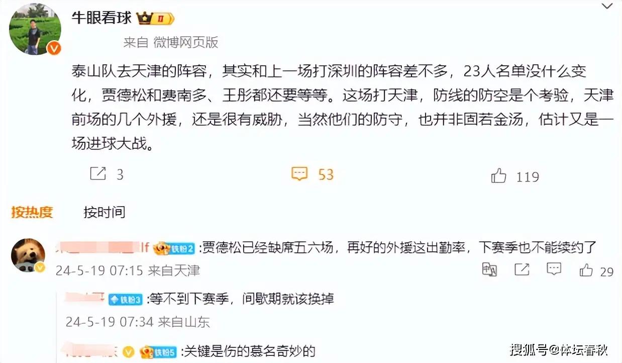 球迷们不满的主要原因还是因为贾德松,这位巴西铁卫为球队做出了不少贡献,但因为频繁的伤病,最近2个赛季缺席了泰山队的大量比赛。而且,本赛季贾德松已经进入了合同年,他的伤病情况似乎比上个赛季更加频繁。