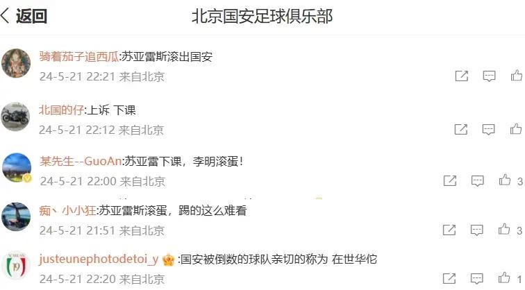 甘当送分童子?赛后,愤怒的北京国安球迷围攻俱乐部官微,提出3个诉求——苏亚雷斯+李明下课,上诉。