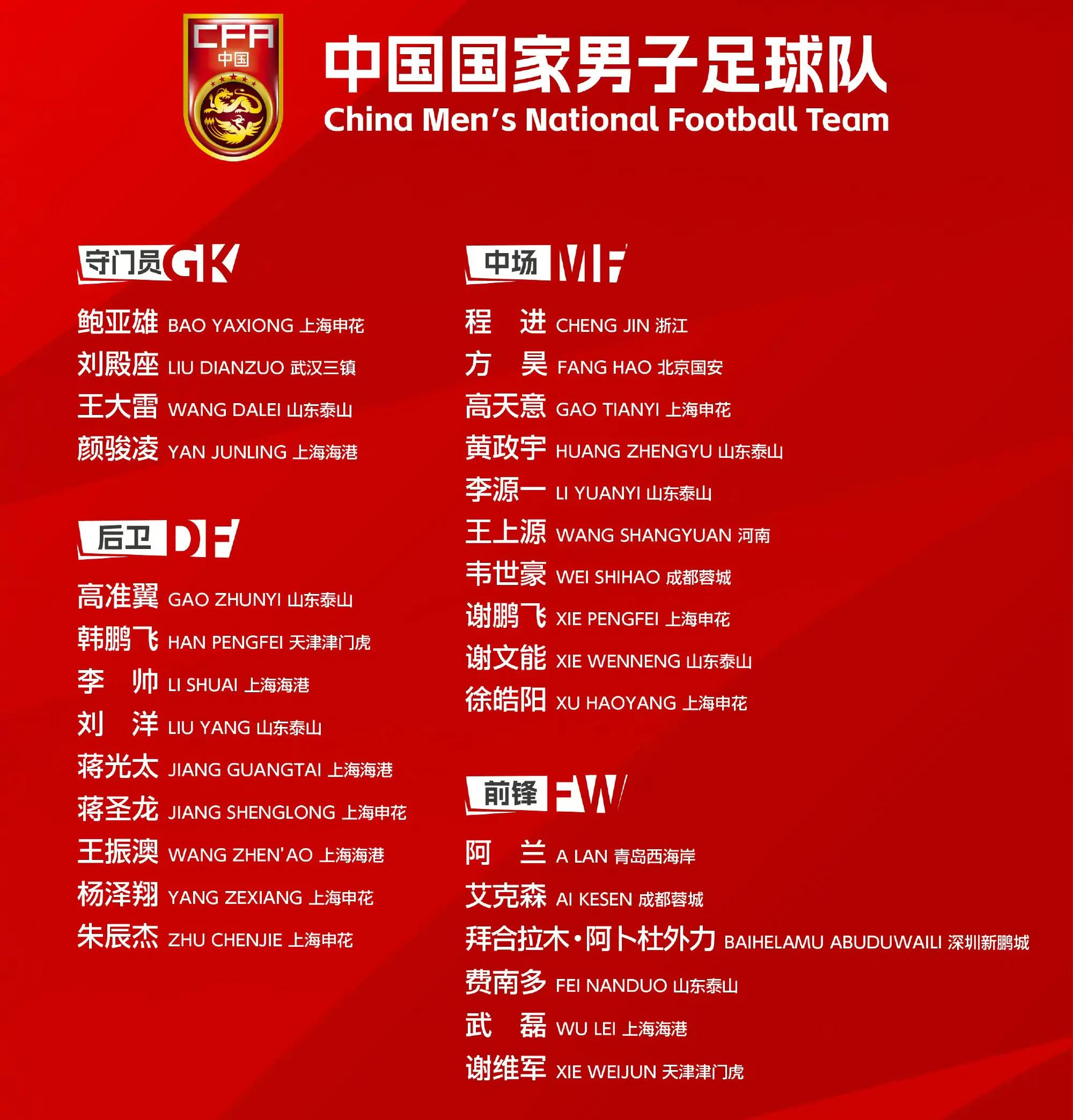 上海申花、山东泰山队各自有7名国脚入选,除了一些固定的国脚外援,这次一共有7名新人入选。分别是鲍亚雄、杨泽翔、徐皓阳、王振澳、韩鹏飞、拜合拉木和黄政宇入选。这几名球员,均在本赛季中超发挥出色。作为领头羊球队,申花的7名国脚实至名归,在崔康熙帝带领下,山东泰山队成绩不稳定,但本土球员大放异彩,顶替了外援的作用。