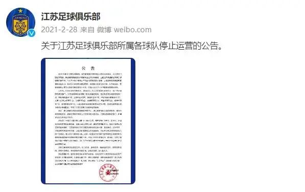 这已经是苏宁第而次在足球运营发生“滑铁卢”,2021年中超冠军江苏足球俱乐部宣布停止运营,成为中国足球历史上第一支解散的卫冕冠军球队。