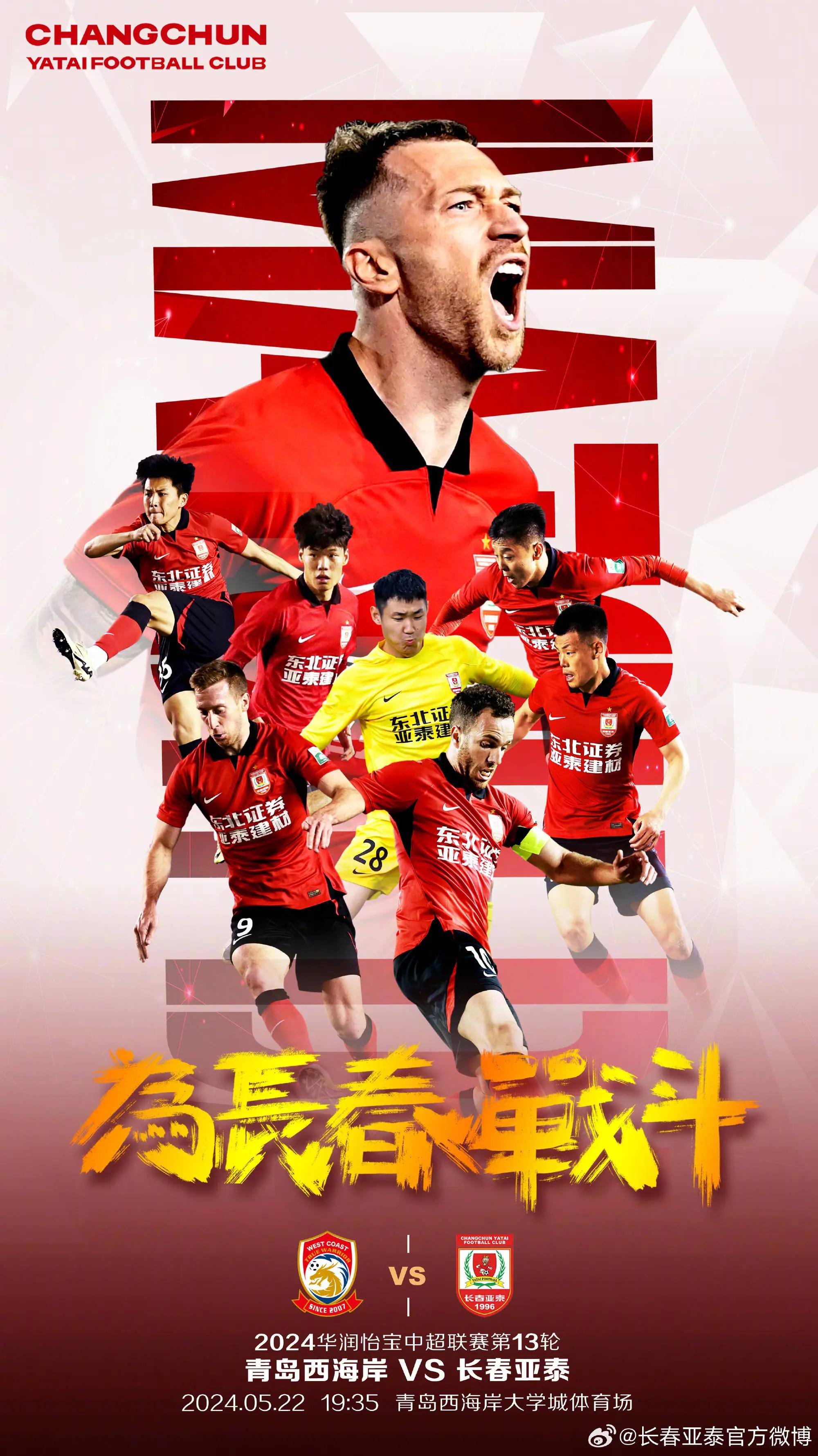 直播吧05月22日讯 19点35分中超第13轮,青岛西海岸主场迎战长春亚泰。