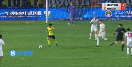 伤停补时2分钟。上半场比赛结束,青岛西海岸0-2长春亚泰。