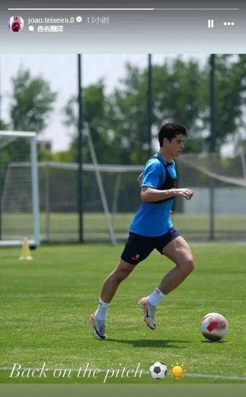 特谢拉晒出了有球训练照,并为此配文“重回训练场”。自5月5日中超第10轮申花主场对阵浙江队的比赛遭遇腘绳肌肌腱轻微撕裂
