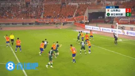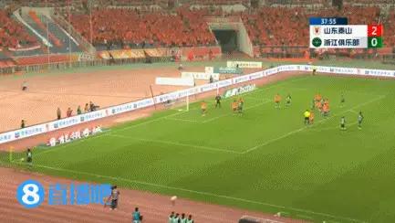 直播吧05月25日讯 中超第14轮,泰山vs浙江。比赛第39分钟,浙江角球机会,张佳祺头球中柱,王大雷两连扑,吴兴涵门线解围。