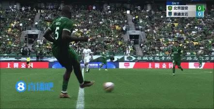 直播吧05月26日讯 中超第14轮,北京国安vs南通支云,比赛第5分钟,何宇鹏边路传中,法比奥在两人防守下头球破门,国安1-0领先南通。