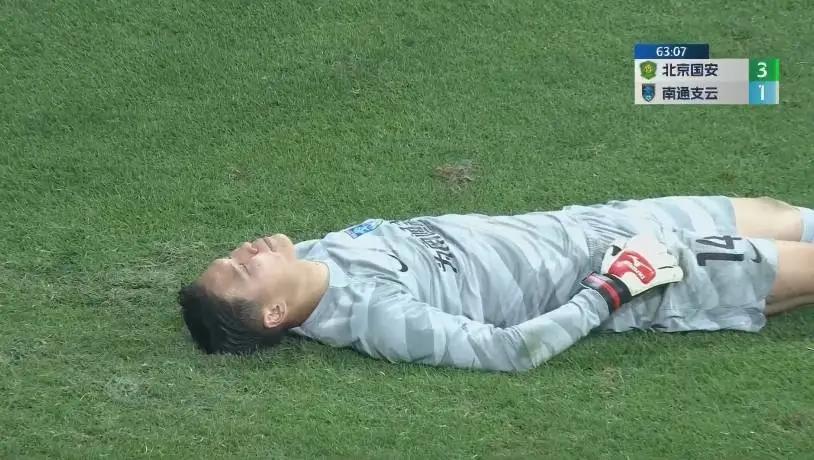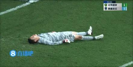 直播吧05月26日讯 中超第14轮,北京国安vs南通支云,比赛第63分钟,法比奥在4人围堵下分球,曹永竞破门,南通门将陈钊在丢球后无奈倒地,国安3-1领先南通。