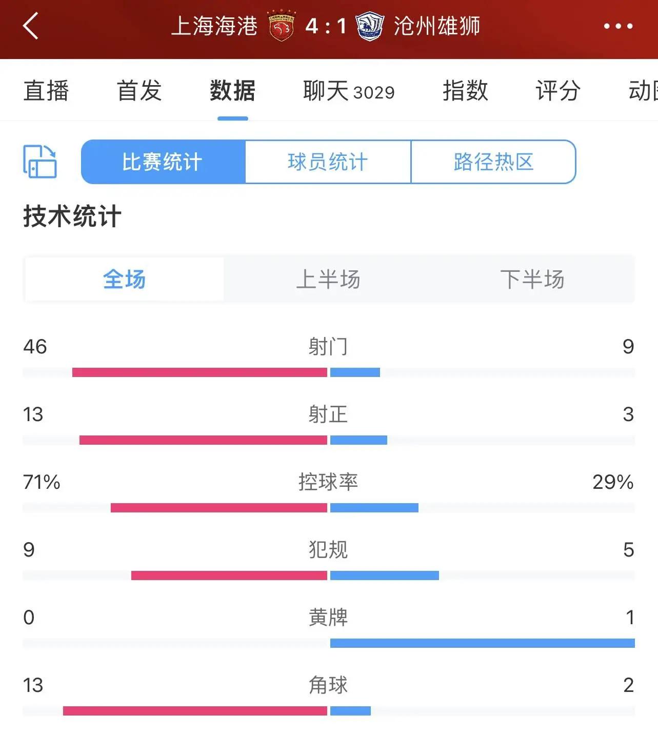 奥斯卡戴帽,武磊传射。海港全场46次射门,13次射正,打入4球,46次射门创有数据统计以来的中超历史新高。