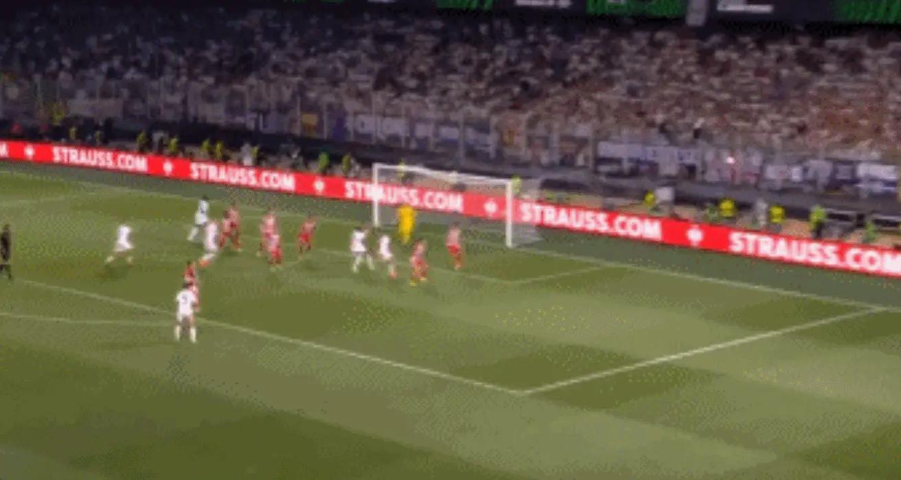 第65分钟,阿图尔开出角球到门前,米伦科维奇高高跃起头球攻门偏出。