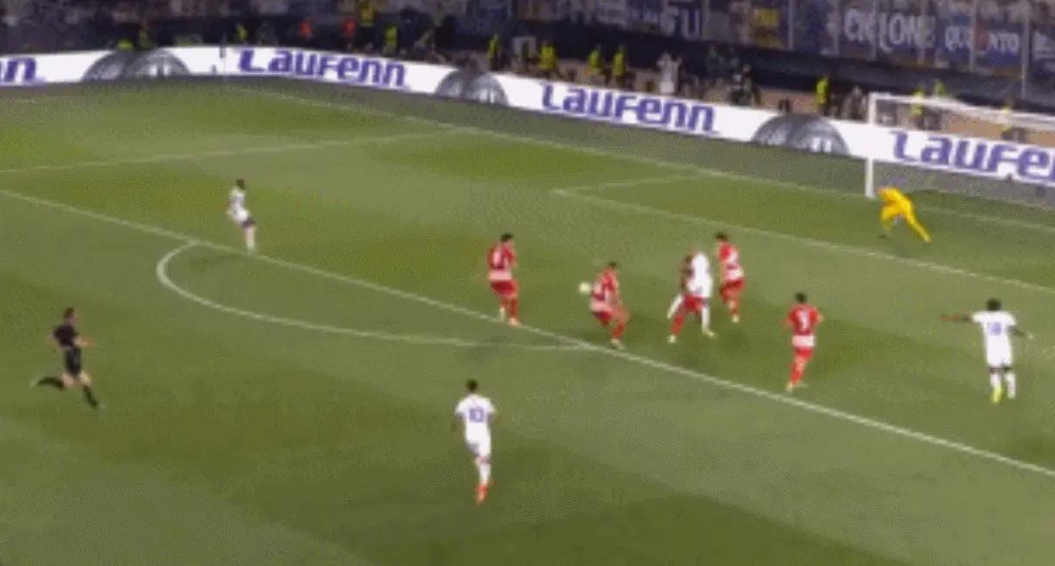 第5分钟,冈萨雷斯带球突破后完成倒三角传球,夸梅包抄射门未碰到皮球,后点的贝洛蒂射门打偏,错失良机。