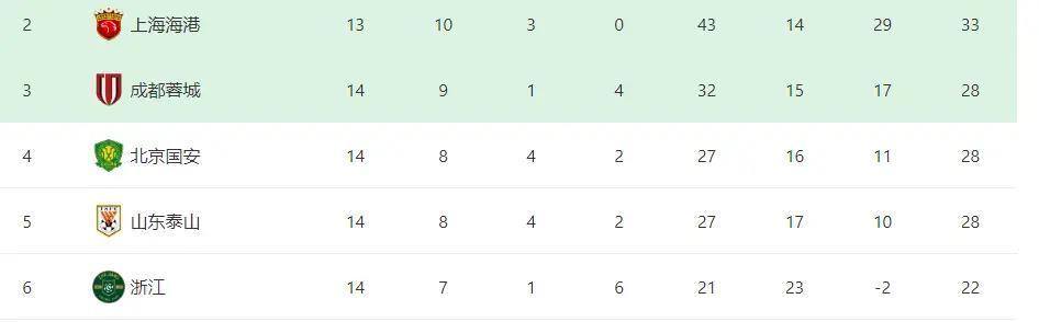前面14轮战罢,山东鲁能8胜4平2负,积28分,暂时排在中超积分榜的第5位。虽然看上去被挤出中超4强之列,但实际上他们和第三名的成都蓉城和第4名的北京国安积分相同,距离榜首上海申花则有8个积分的差距,争冠希望虽然看上却有些渺茫,但也并不是毫无希望。如果能在本赛季后半程持续发力,打出稳定表现,一切皆有可能。