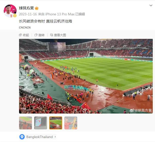在去年11月份,国足客场2-1击败泰国队的比赛,方昊曾自费前往泰国客场看球,为中国男足加油。而国安前锋张玉宁也调侃自己的小老弟,称他是第一个“从看台踢到场内”的队员。这段经历,也不难让我们看出方昊对足球的简单热爱。
