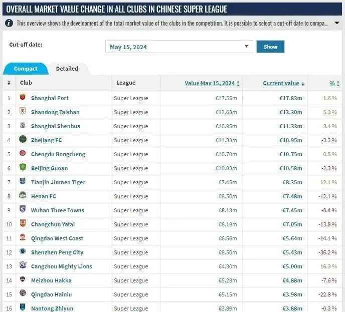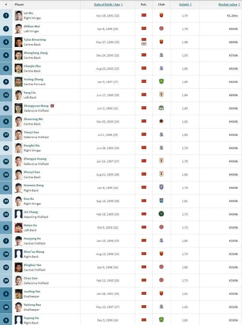 北京时间6月5日,德转网站更新了中超球队和球员的最新身价榜。