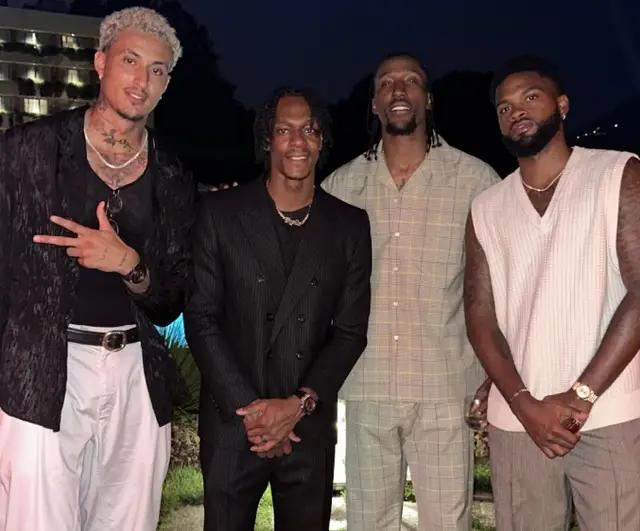 在拉托亚晒出的照片中,库兹马、波普、特洛伊-丹尼尔斯等湖人旧将均来到了现场。