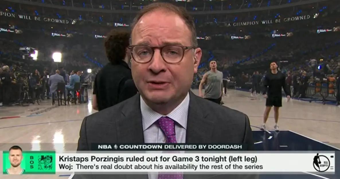 名记Woj在赛前的采访中透露,波尔津吉斯能否在后续的总决赛中复出“真的值得怀疑”(REAL DOUBT)。