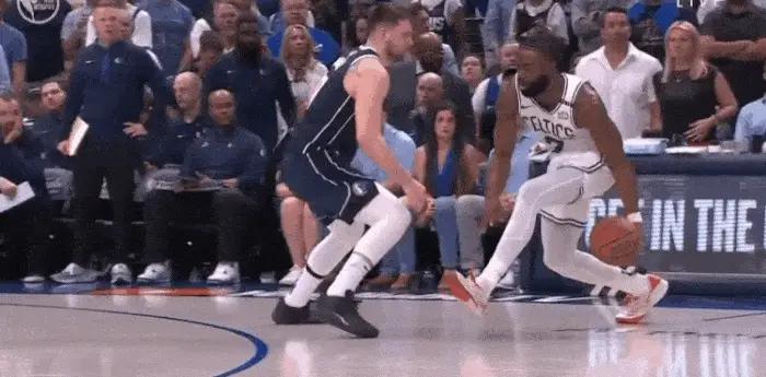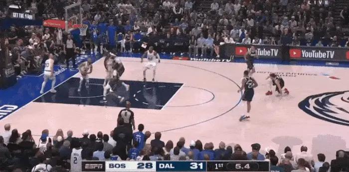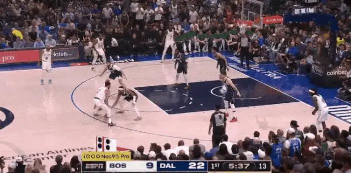 看着东契奇点名图图,又突又顶又是抛投,打得图图嗷嗷叫苦连天,一旁的欧文还突施3分冷箭。
