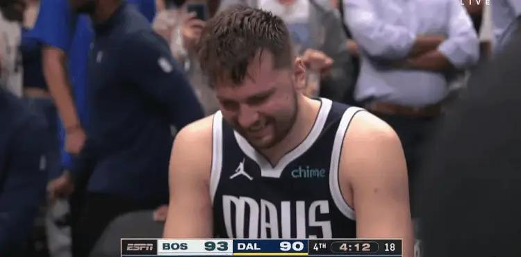 最后4分12秒的时候,东契奇在退防牛爷爷时,两人双双倒地,东子吃到了本场比赛的第6犯,东子坐地摊手向裁判示意,愤怒咆哮无法接受。
