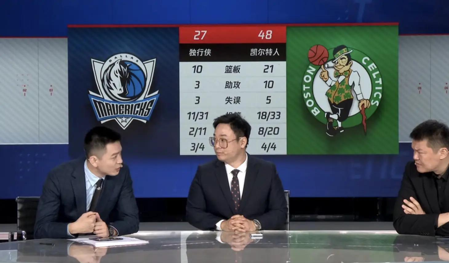 NBA总决赛第3场打完,凯尔特人独行侠目前打成3:0,总决赛已经没有任何悬念,绿军必将升起第18面冠军旗帜。3:0历史上没有人翻盘过,同时本场的解说员非常的专业,杨鸣朱芳雨他们两个人直接作为解说嘉宾联手出击,携手主持人柯凡三个人一起进行了解说。