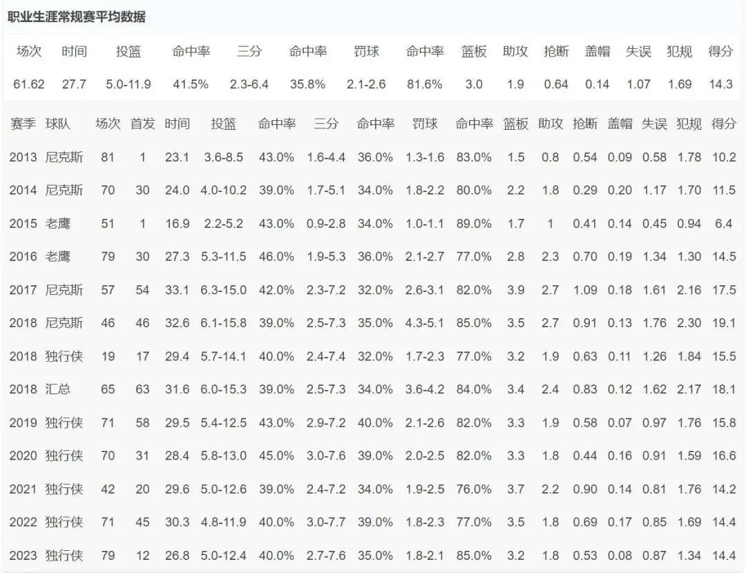 季后赛首轮打快船,克莱伯系列赛三分命中率高达55.6%,关键的天王山之战三分7中5砍下15分。今年季后赛,小哈达威和克莱伯各有1场得分上双。克莱伯的合同是3年3300万美元,2026年夏天才能到期,本赛季薪水1100万美元。