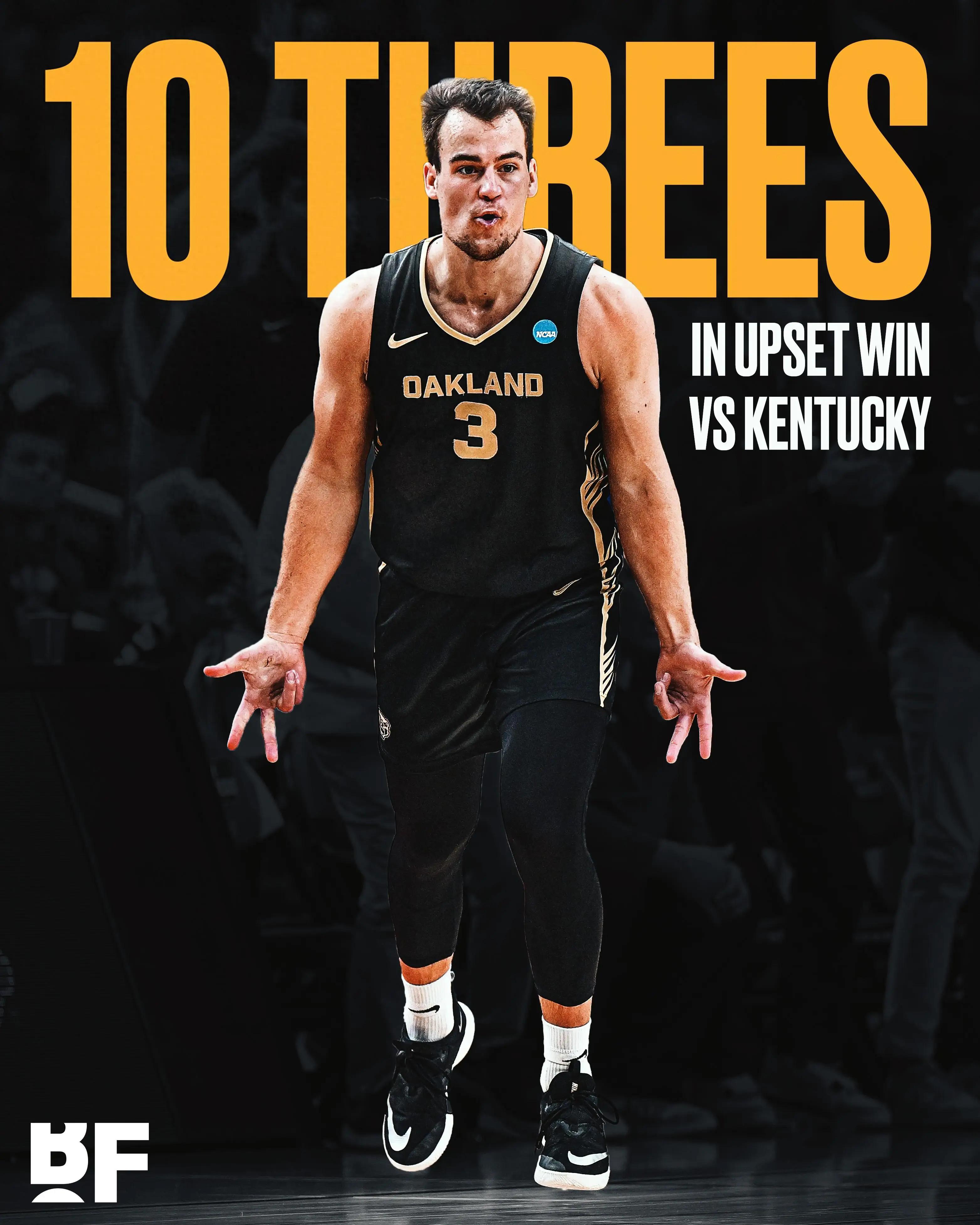今年NCAA首轮,南区三号种子肯塔基大学76-80惨遭14号种子奥克兰大学下克上,奥克兰大学替补后卫杰克-戈尔克10记三分轰下32分。