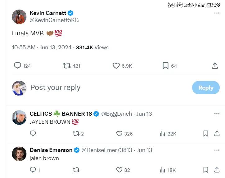 加内特也在G3布朗命中制胜一球后认同他就是FMVP。