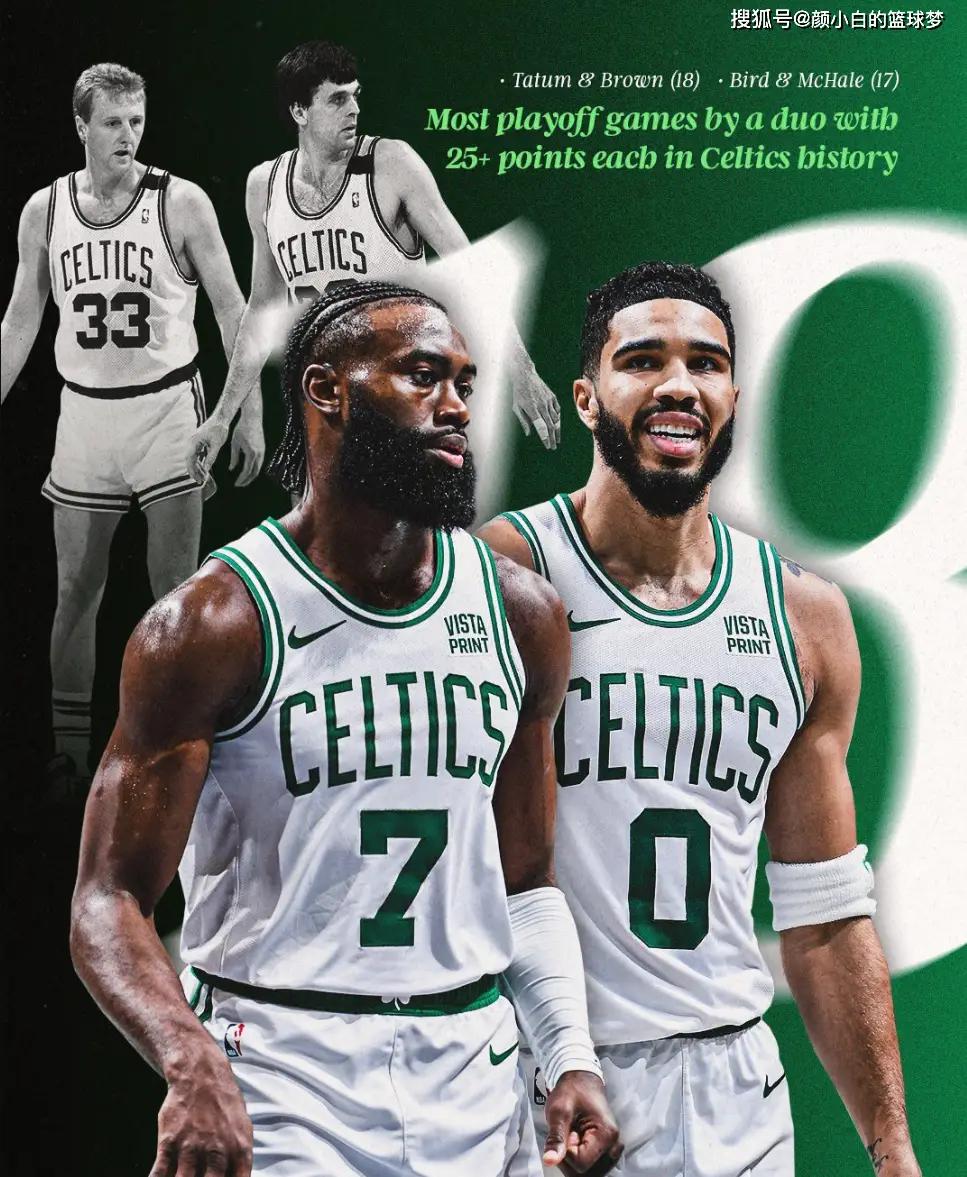2.布朗/塔图姆季后赛已经一同拿到17次25+队史第二多;
