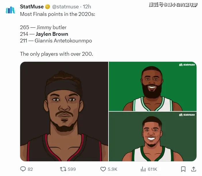 4.自2020年后总决赛得分第二多是布朗,第一是巴特勒;