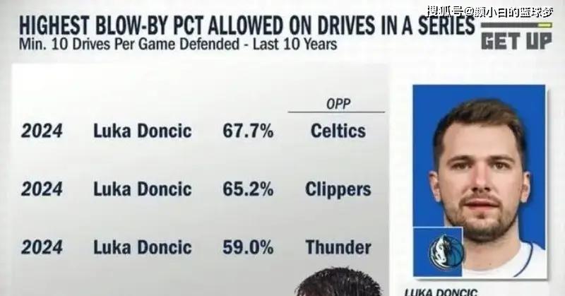 更离谱的是,过去10年季后赛防守一步被过榜单,东契奇2024年总决赛67.7第一,2024年东契奇首轮快船第二,2024年东契奇次轮雷霆第三,从各项数据来看东契奇被“打”成了丢冠罪人。