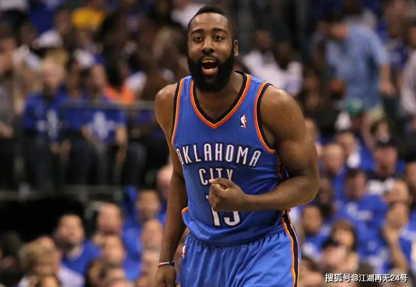 虽然2009年哈登在首轮第3顺位就被雷霆选中了,但那时他们的阵容中已经有杜兰特和威少两大潜力新星了,为了避免球权冲突,教练组决定将哈登定位成球队的第六人。2011-2012赛季哈登场均16.8分4.1篮板3.7助攻1抢断,常规赛结束后他成功当选最佳第六人,季后赛他还帮助球队一路杀进了总决赛。