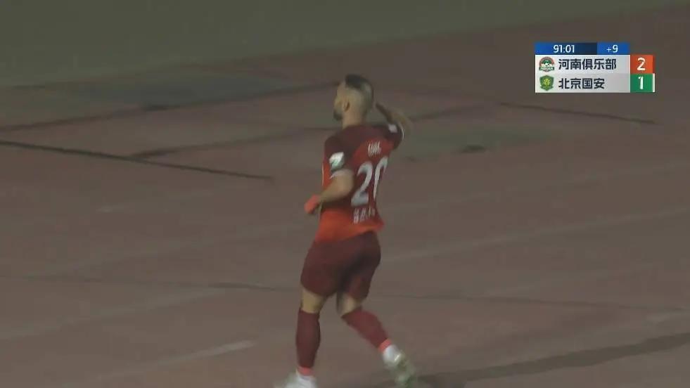 第91分钟,河南角球机会,科维奇头球破门,河南2-1反超。