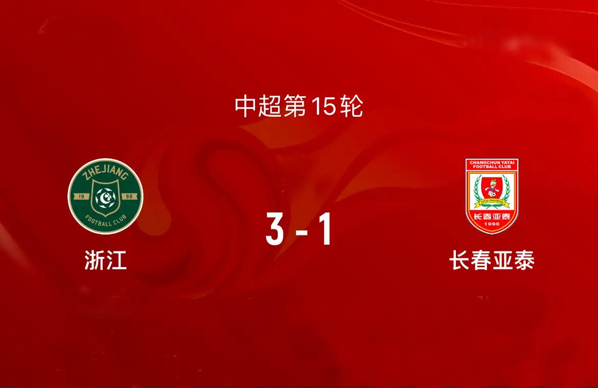 6月15日19:35,2024赛季中超联赛第15轮:浙江VS长春亚泰。