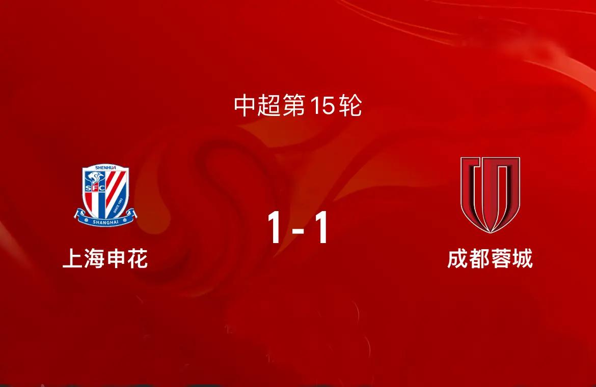 1分,这结果双方显然都难言满意。上海申花15战11胜4平积37分,先赛1轮以1分优势夺回榜首,甚至可以说优势已经葬送了。成都蓉城15战积29分升至中超积分榜第三,对第四山东泰山也只有净胜球的优势。此战未能获胜,申花可能就输掉了一个赛季,毕竟海港太强太稳了。
