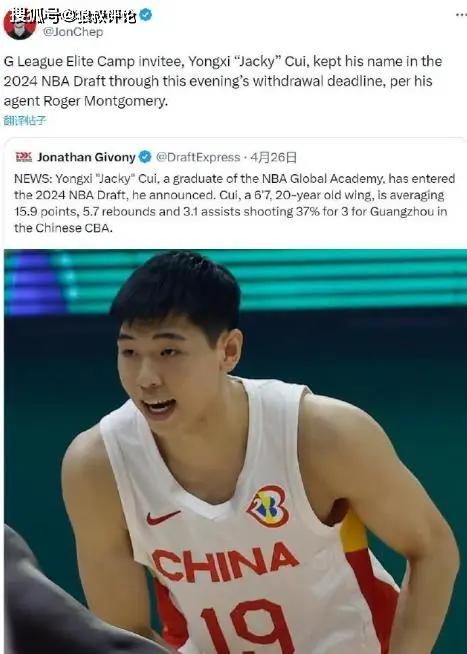 北京时间6月17日,根据崔永熙美方经纪人罗杰-蒙哥马利确认小崔不退选,参加今年的NBA选秀大会。