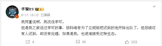 6月13日,李姓知名媒体人在个人社交平台“讲了一个故事”:某支打进18强赛的球队,有位球员被征召之后说自己有伤,“死活不踢”,主教练随弃之。未己,球队换帅,复召之,该球员又说自己(有伤)踢不了,复离队。