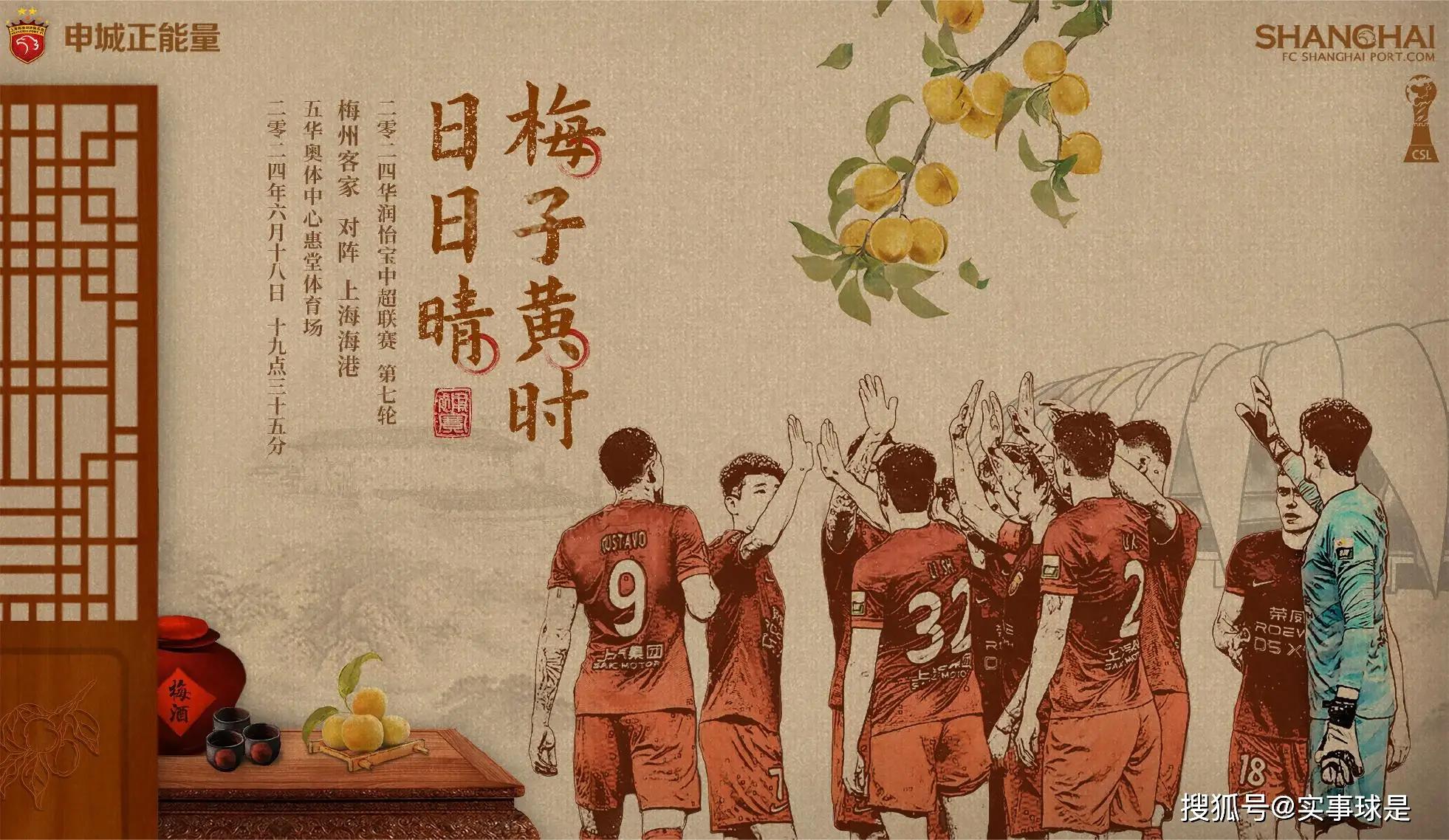 6月18日(星期二)19:35,在2024赛季中超联赛第7轮的一场补赛中,上海海港将客场对阵梅州客家。赛前,上海海港发布了此役的赛事海报,主题为:梅子黄时日日晴。