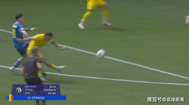 其中转播回放显示,斯坦丘这记世界波的球速高达每小时116km,皮球距离球门21米。