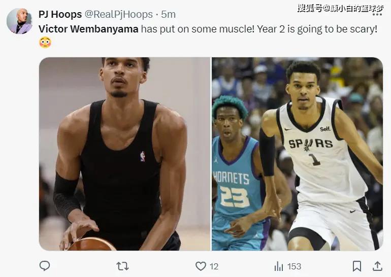 NBA记者埃文-斯迪瑞写道:维克托-文班亚马的身体变化已经显现,在NBA一年的力量训练与比赛总,文班亚马的体型有了明显改善,联盟中许多人认为文班亚马已经开始有了冲击MVP的天赋与能力。