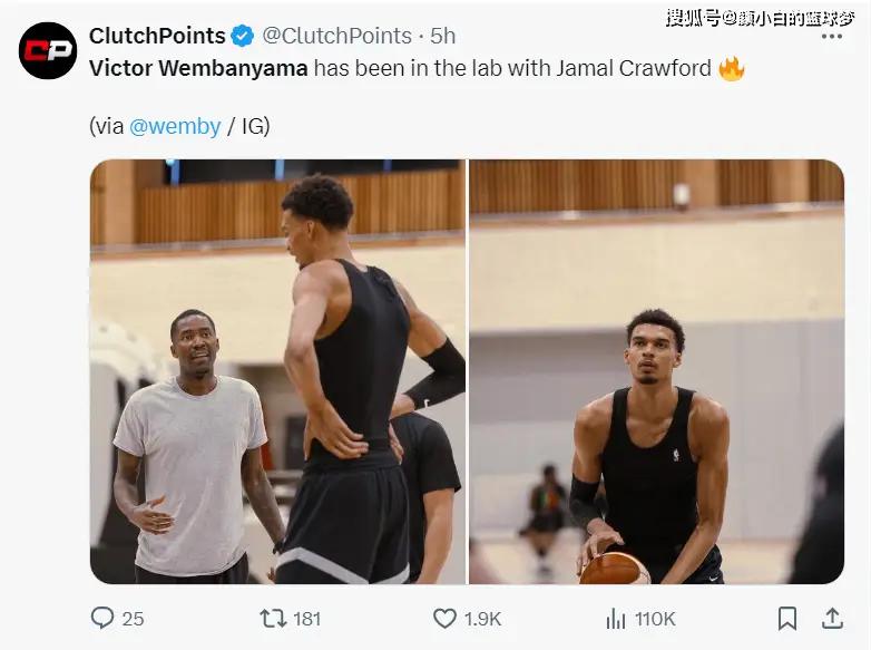 北京时间6月18日,文班亚马在个人IG上晒出他与贾马尔-克劳福德,这位身高7尺2的大个子求教NBA历史上结合球能力最好的球员之一,很明显文班亚马还想在持球进攻上取得进步。