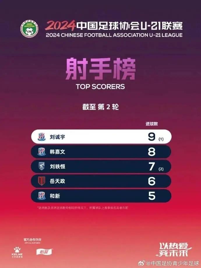 2024中国足球协会U-21联赛决赛第一阶段第2轮战报+积分榜+射手榜