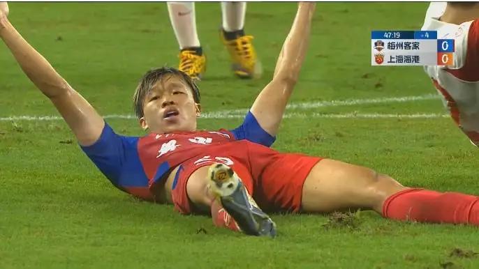 直播吧6月18日讯中超第7轮补赛,梅州客家vs上海海港。比赛上半场补时阶段,梅州茹子楠即将形成破门良机时被回防的李帅铲球破坏,裁判示意没有犯规,比赛继续。
