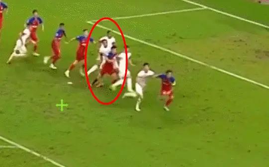 裁判认为没问题,这就是真的有效进球么?未必。球迷发现一个很大的疑点。仔细看上面这个进球过程,请注意蒋光太的动作(下图)。