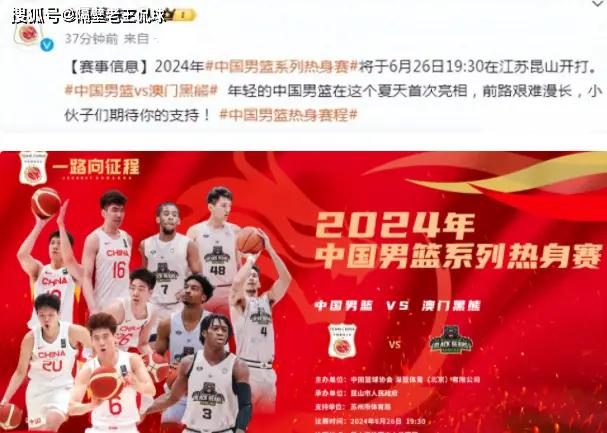 根据中国篮协官方公布的赛程来看,中国男篮将在6月26日迎来揭幕战,对手是澳门黑熊队,届时这支全新的中国男篮将亮相,而主教练郭士强也会出现在我们的视线中; 从最新公布的热身赛海报来看,没有周琦、张镇麟和胡明轩,出现在海报中的五人是杨瀚森,余嘉豪,杜润旺,程帅澎,朱俊龙,这是一次全新的亮相。