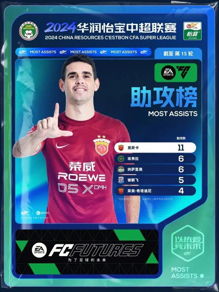 榜单前五位中,除了奥斯卡还有三名外援。其中浙江队的埃弗拉和河南队的纳萨里奥并列,都完成了6次助攻,而奥斯卡的队友奇塔迪尼也以4个助攻在榜单上名列第五位。
