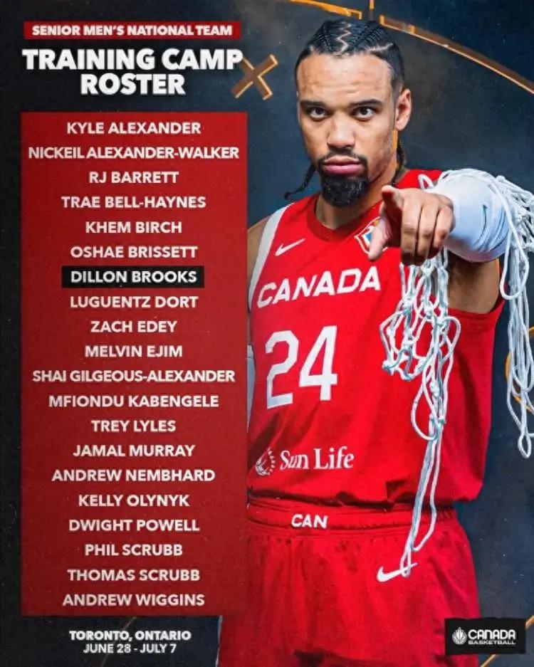 直播吧6月20日讯 今日,加拿大男篮公布了2024年巴黎奥运会20人训练营名单,包括了12名NBA现役球员,具体名单如下: