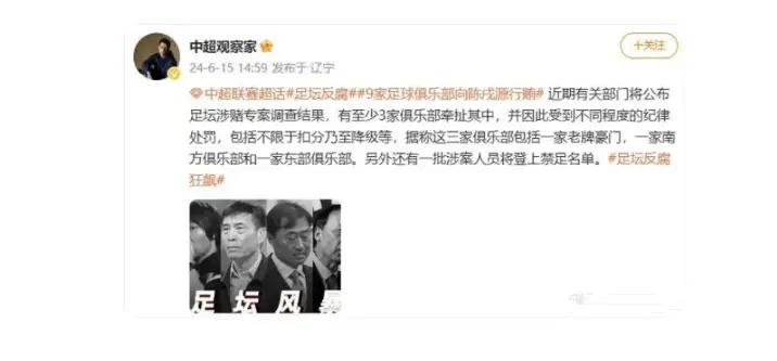 近期,知名的足球记者“中超观察家”关于中国足球此前风暴的报道引发了很多球迷的关注,在报道中,“中超观察家”表示足协将公布至少3支球队的名称,这三支球队分别为中超传统劲旅、南方俱乐部和东部俱乐部,而这三家俱乐部受到的惩罚包括不限于扣分乃至降级。